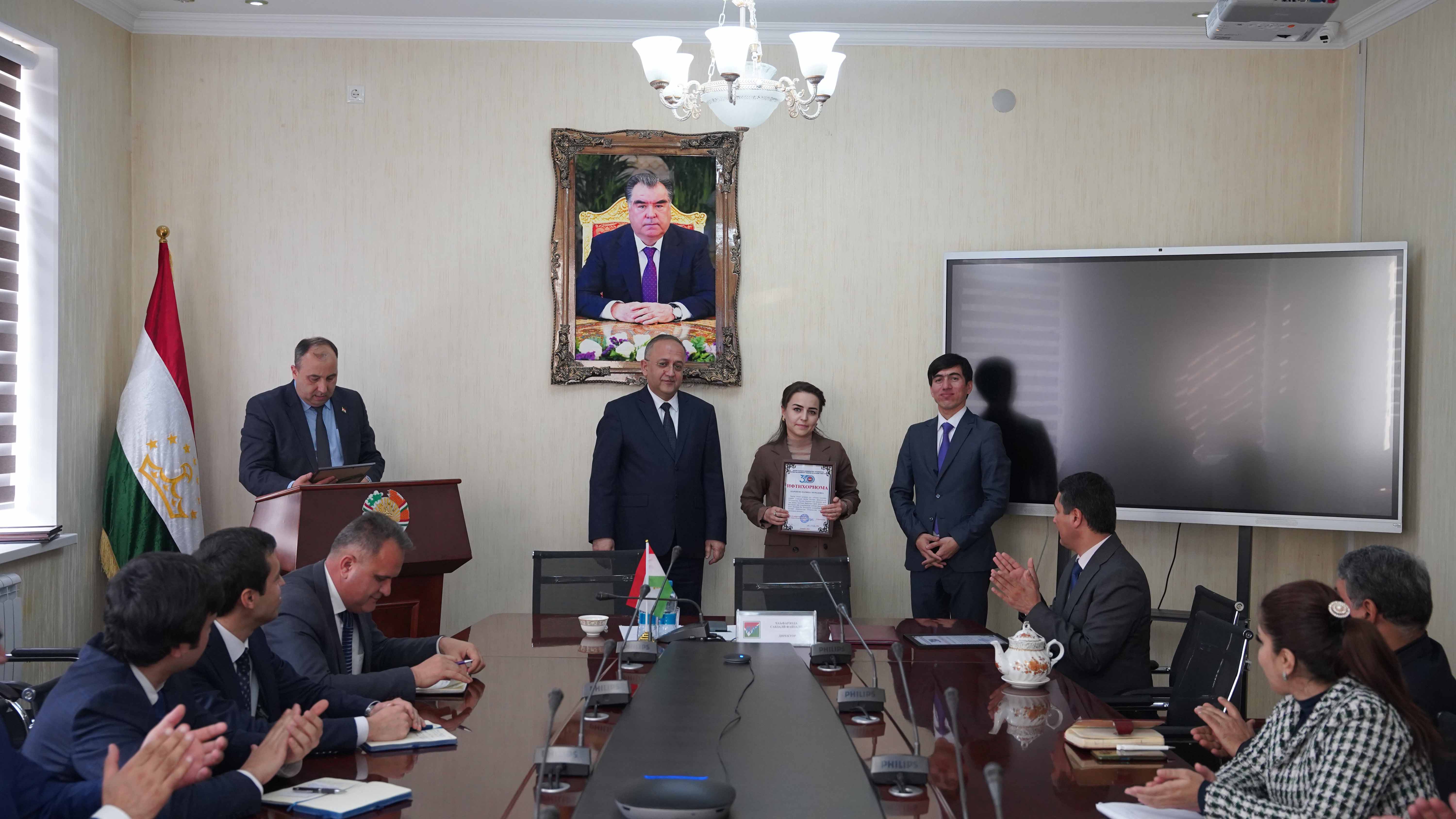 Дар охири ҷаласа 6 нафар аз ҷумлаи кормандони ҳайати асосии Марказ бо ифтихорномаву сипосномаҳои Кумитаи иҷроияи ҲХДТ дар ноҳияи Исмоили Сомонӣ қадргузорӣ карда шуданд.
